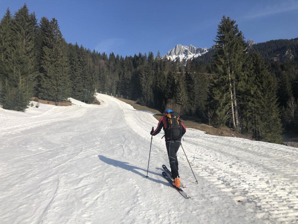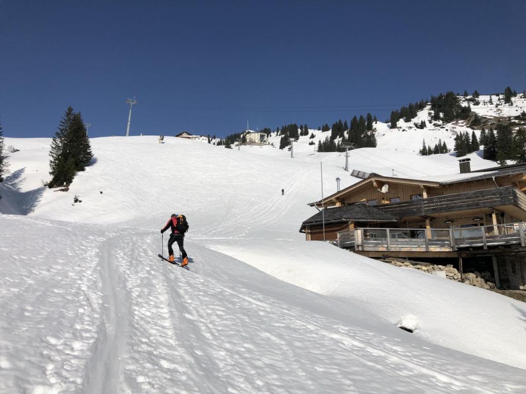 Das macht sich im Abstieg dann auch bemerkbar, wie ein Sausewind flitzt er über den harten Schnee…