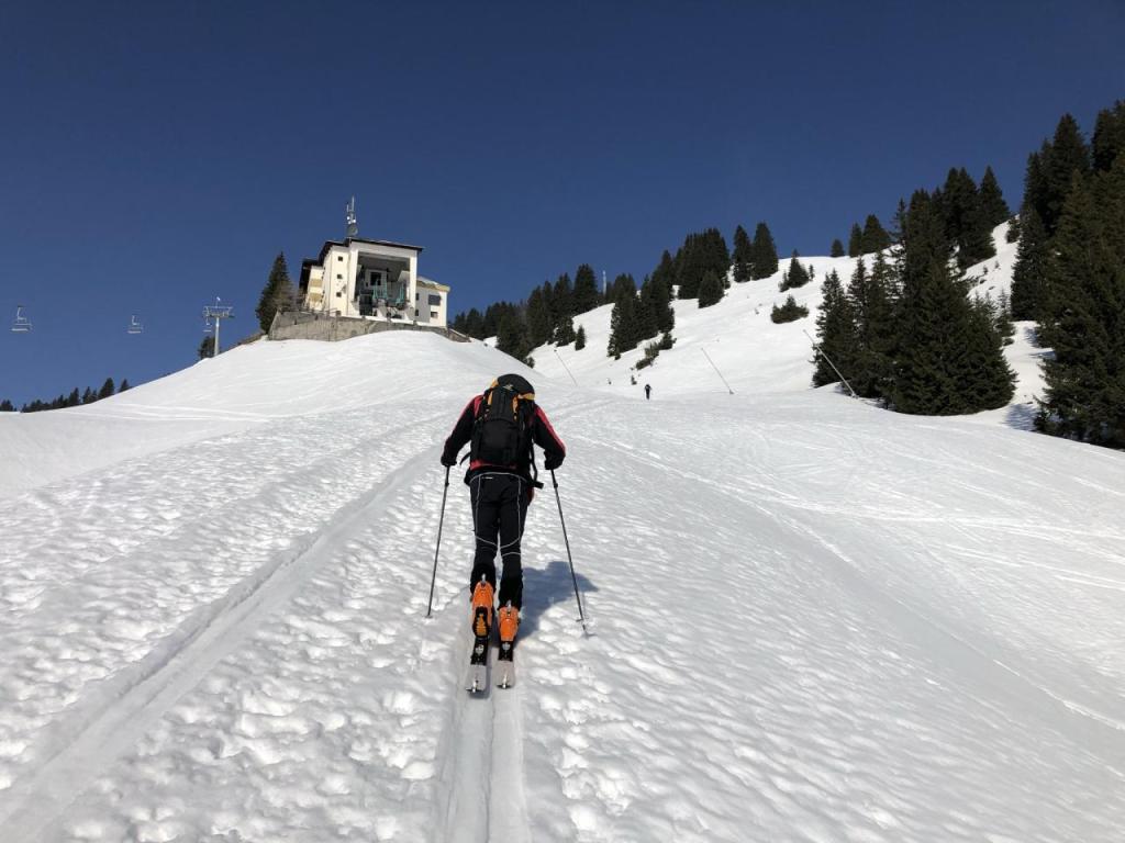 Immer wieder erreichen wir Passagen, die gut mit den Schneeschuhen gehen würden, um im nächsten Moment wieder fast schneefrei weiterzulaufen.