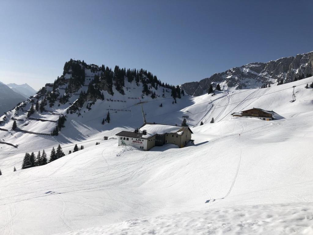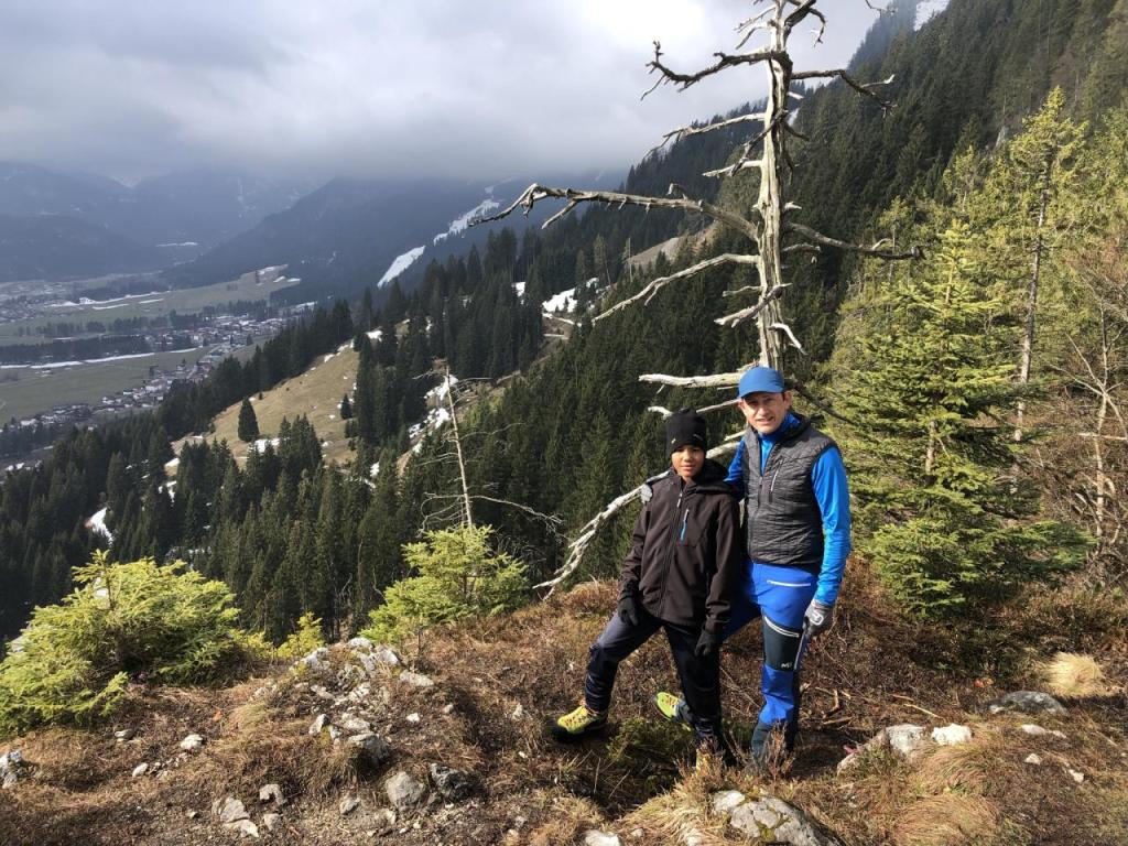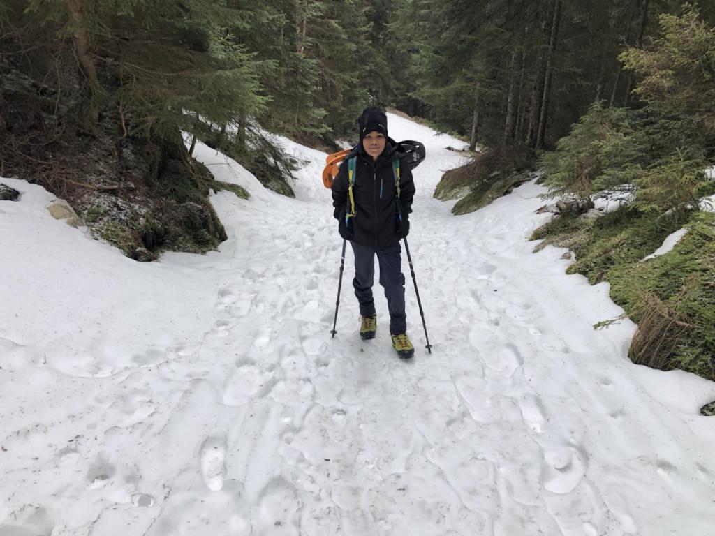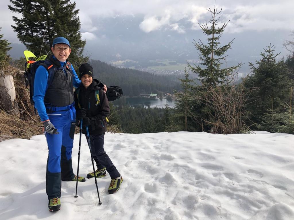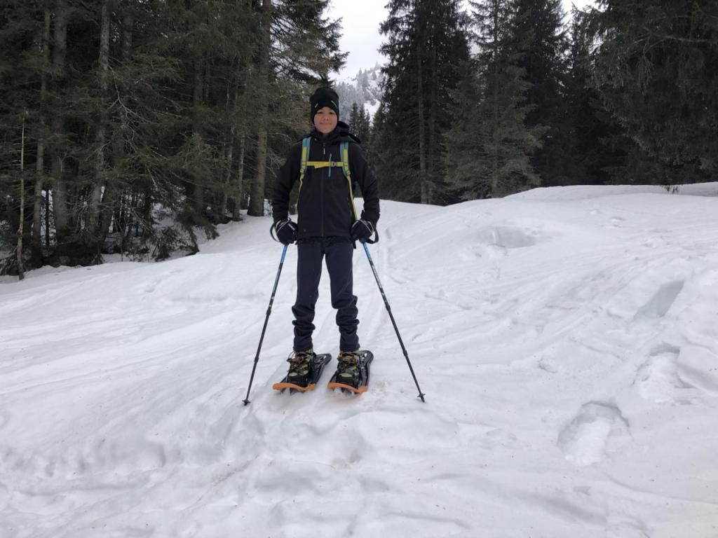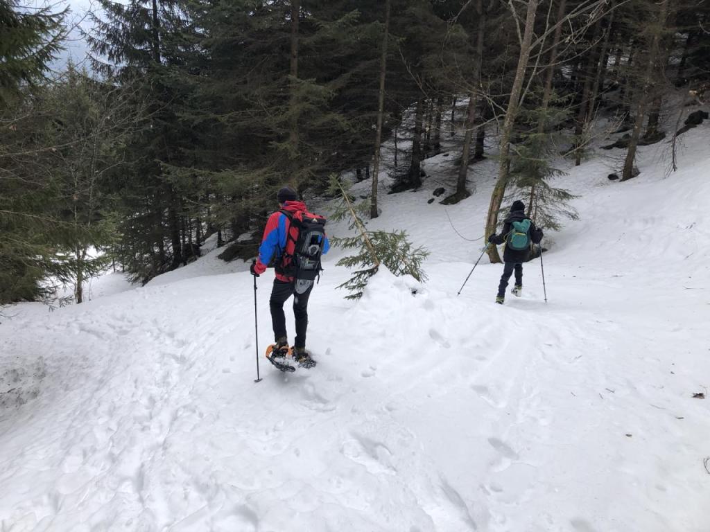 Beim Abstieg nehmen wir nun doch die Schneeschuhe zur Hilfe, gerade für Papa und mich wegen dem Einbrechen in die Schneedecke eine große Hilfe.