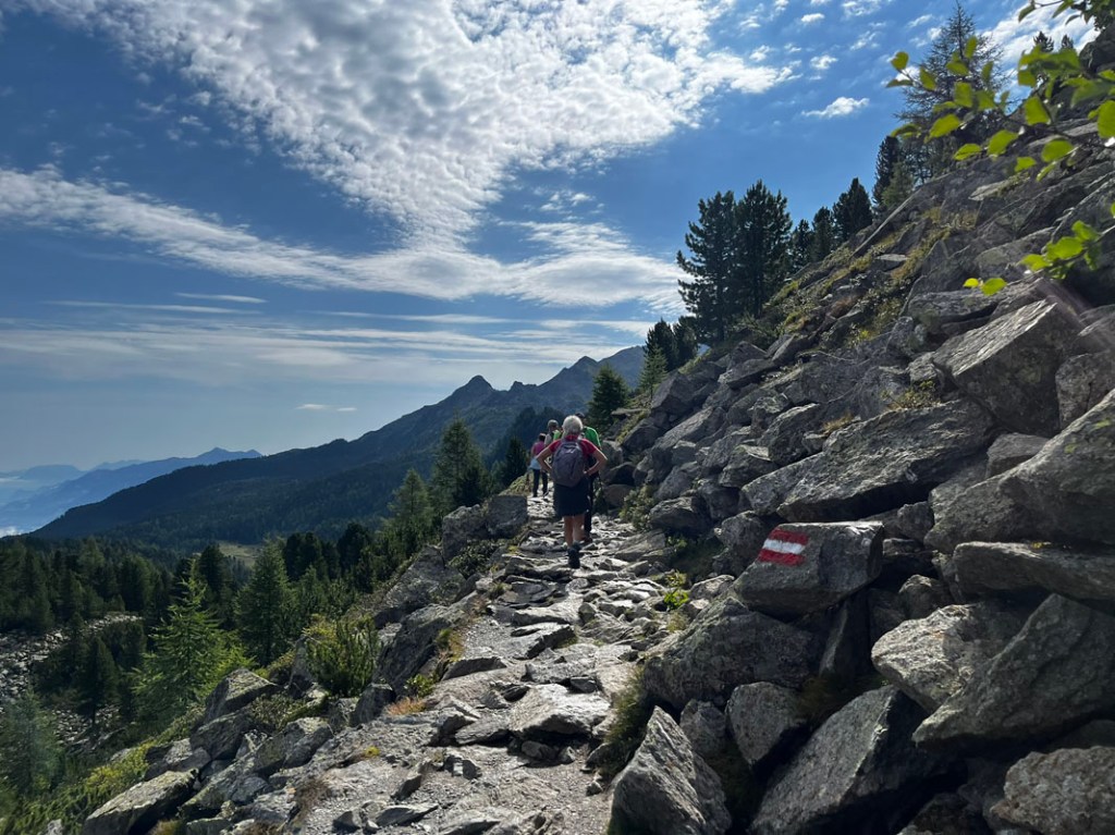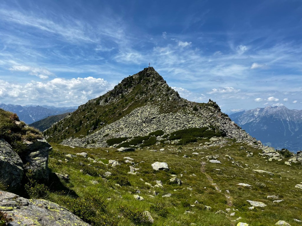 Allerdings haben sie gerade „Betriebsurlaub“ und ich genieße eben nur die Aussicht, bevor ich mich weiter zur Aldranser Alm begebe.