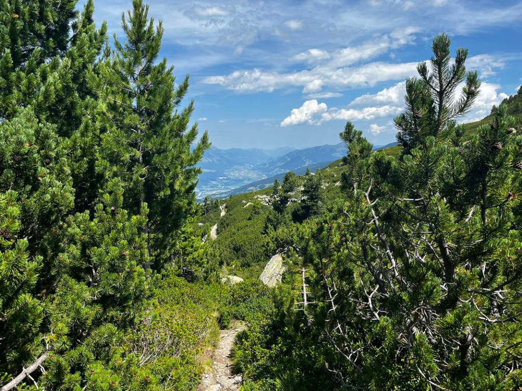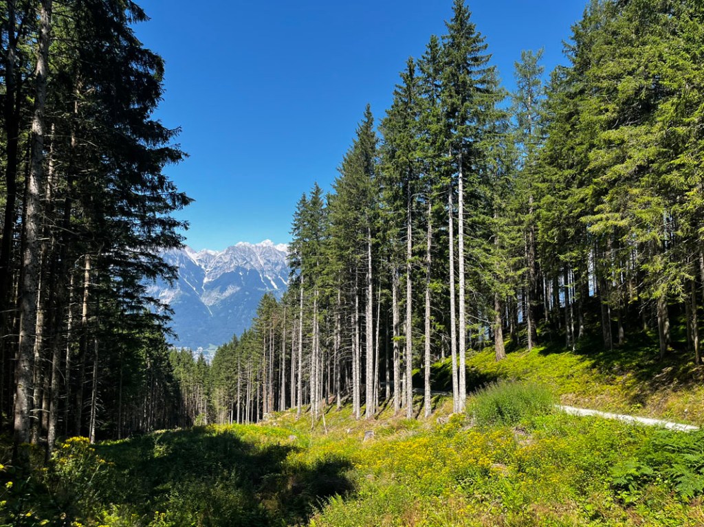 Über den Rinnner Alm Steig steige ich schnell höher, im Wald wurde heuer viel geschlägert, ganze Waldstriche wurden freigeholzt.