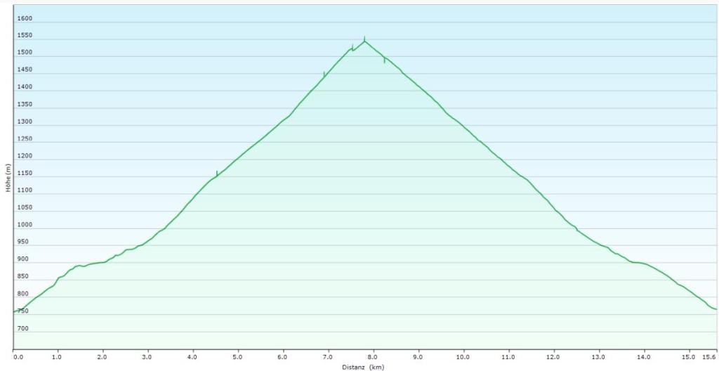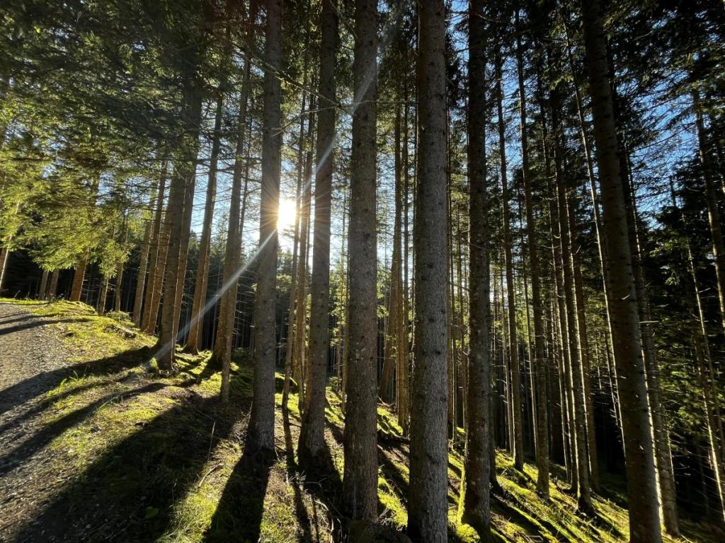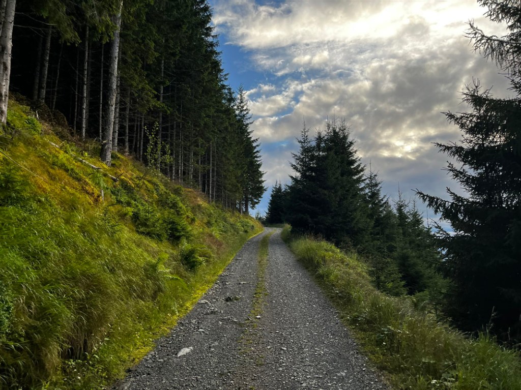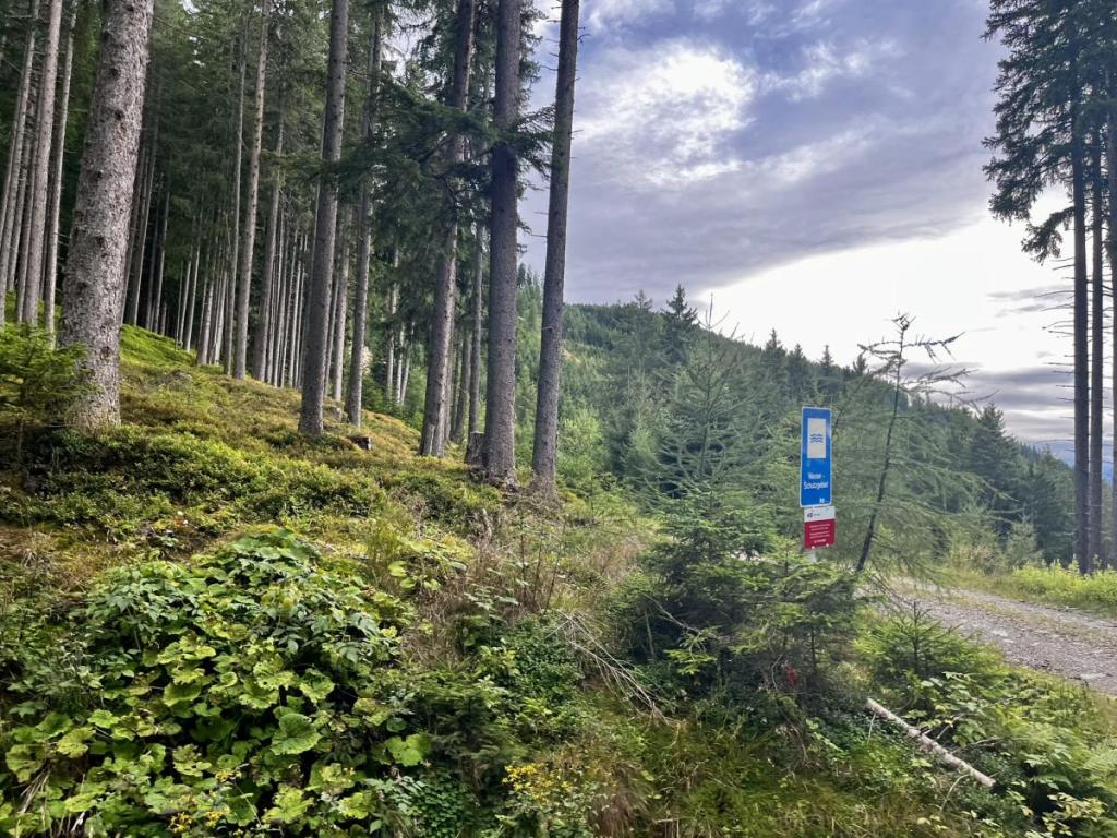 Zuerst wander ich durch Wald, das letzte Stück muss ich über die gut gerichtete Forststrasse zur Alm hoch laufen.