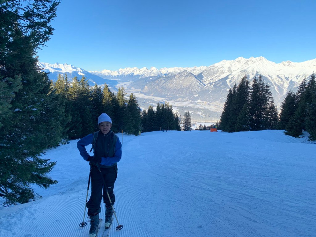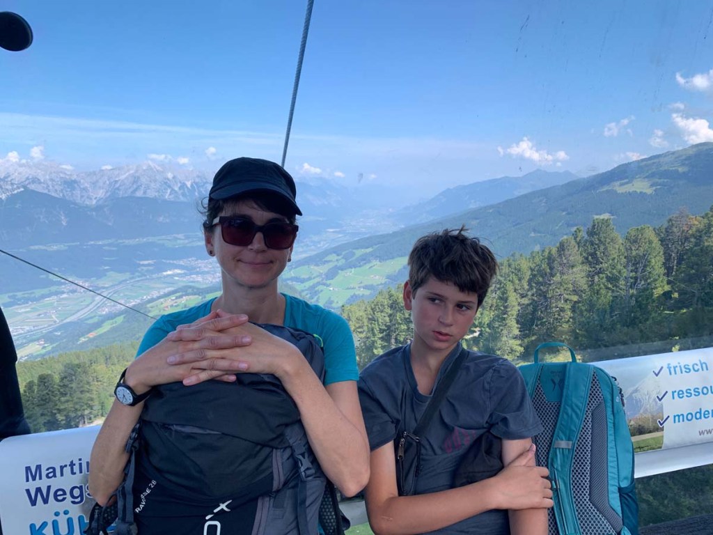 Der Ausblick von der Terrasse auf das Inntal ist phänomenal. So ausgerastet, machen wir uns pünklich auf zum Bus.