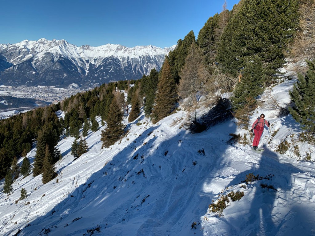 Der Hochnebel hat sich nun fast ganz verzogen, wir sehen einen Teil unserer Tour, den Patscherkofel und auch näher den Gilfert. Eine tolle Tour, das muss ich schon sagen!
