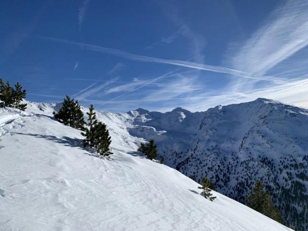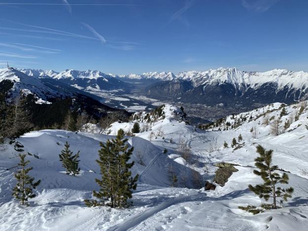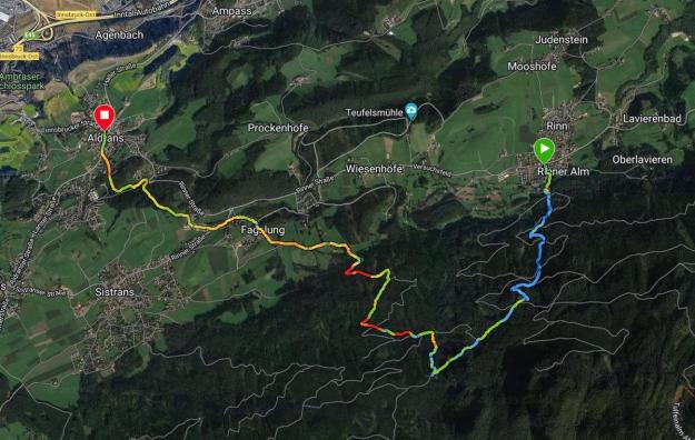 Wir folgen dem gleichen Weg zur Abzweigung Rinner Alm / Aldranser Alm, dann wandern wir in Richtung der zweiten Alm.