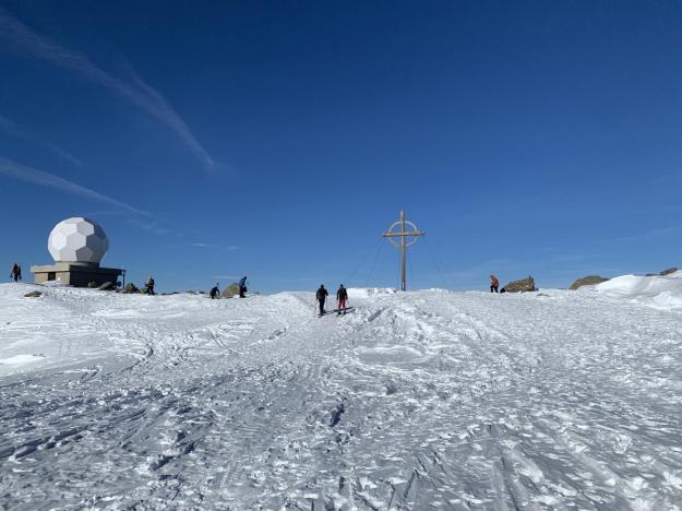 Am Ende zweigt ein kleiner Weg nach rechts, und wir erreichen unser für heute höchstes Ziel, die Kriegerkapelle (1.739m).
