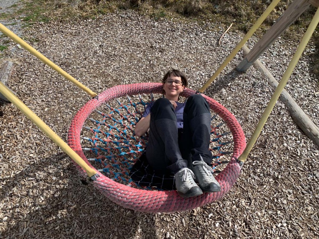Am Waldspielplatz vorbei, die Forststraße ein paar Mal querend, steigen wir höher und höher.