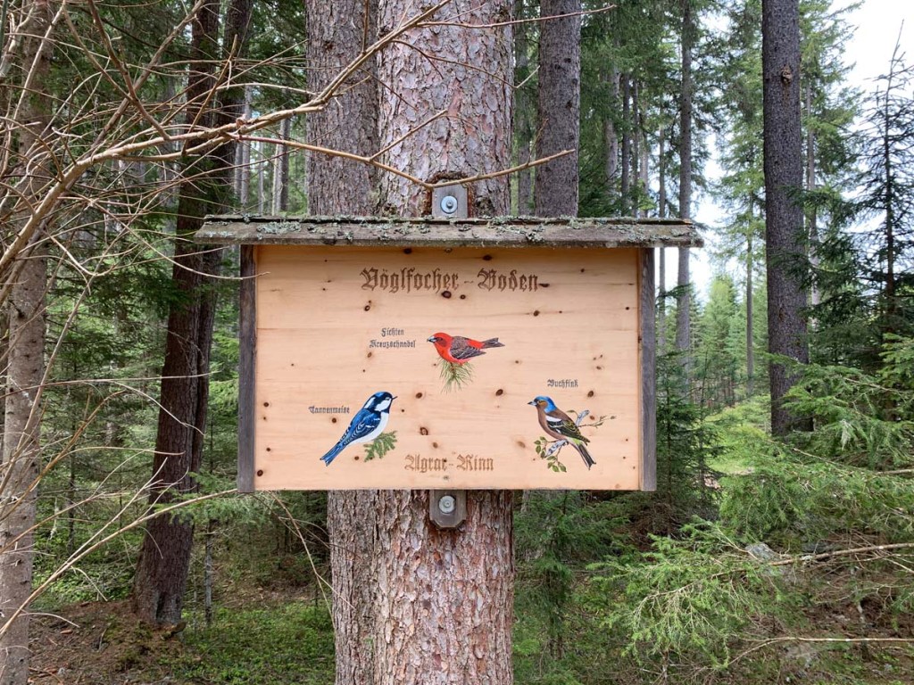 Hier wurde die Infotafel überarbeitet, in neuem Glanz erstrahlen hier Tannenmeise, Fichten-Kreuzschnabel und Buchfink. Auch wenn ich diese Vögel hier noch nicht gesichtet habe, die Bilder sind dafür umso anschaulicher.