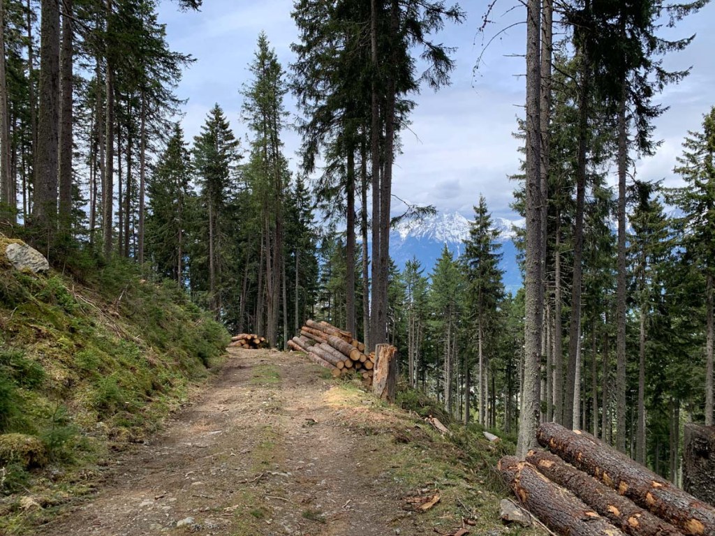 Das letzte Stück bestreiten wir wieder auf einer Forststraße, bevor wir vor unserer zweiten Alm, der Aldranser Alm (1.503m) stehen. Auch hier kehren wir nicht ein…